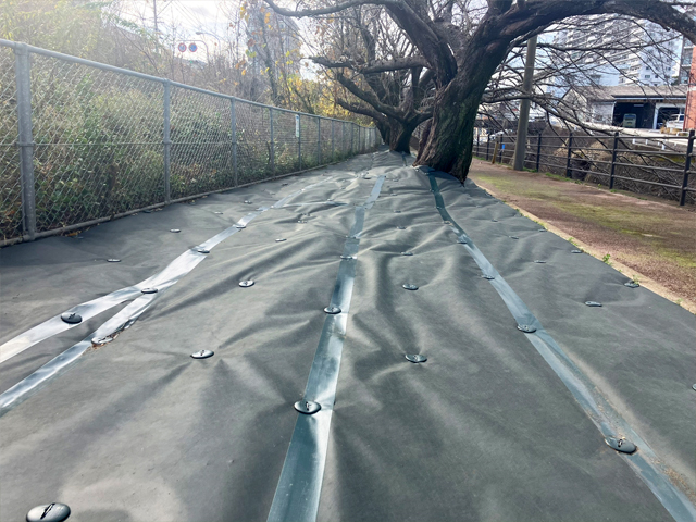 外構工事 医療施設 防草シート設置